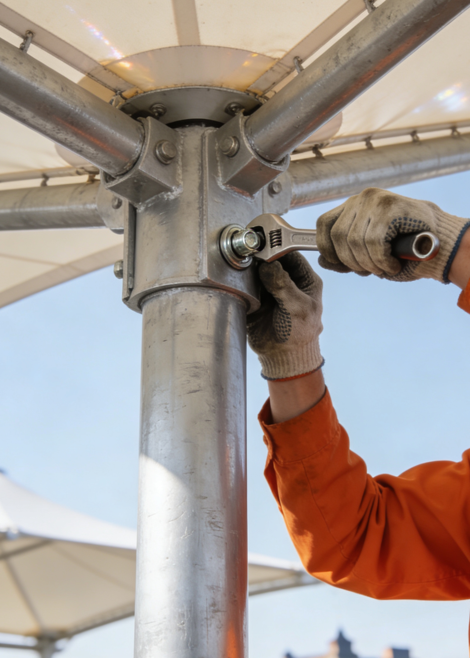 团队深耕钢结构 / 膜结构行业 10 年,精通钢结构焊接与安装、膜结构裁剪及张拉,熟练应对复杂场地、异形结构的搭建工艺